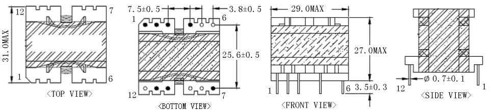 ◆AG九游会·产品占位为29.0mmx31.0mm max.,高度27.0mm max.。◆用于电视机、显示器、办公设备等内置开关电源。