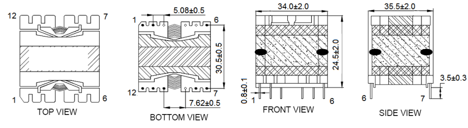 ◆AG九游会·产品占位为35.0mmx37.5mm max.,高度35.0mm max.。◆用于电视机、显示器、办公设备等内置开关电源。