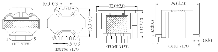 ◆AG九游会·产品占位为35.0mmx38.0mm max.,高度23.0mm max.。◆用于电视机、显示器、办公设备等内置开关电源。