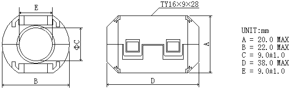 ◆AG九游会·产品磁环尺寸为Φ16mmx9mmx17mm typ.,圆柱式结构。◆用于电路连接或电线电缆接插抗干扰。◆除了此处显示的标准